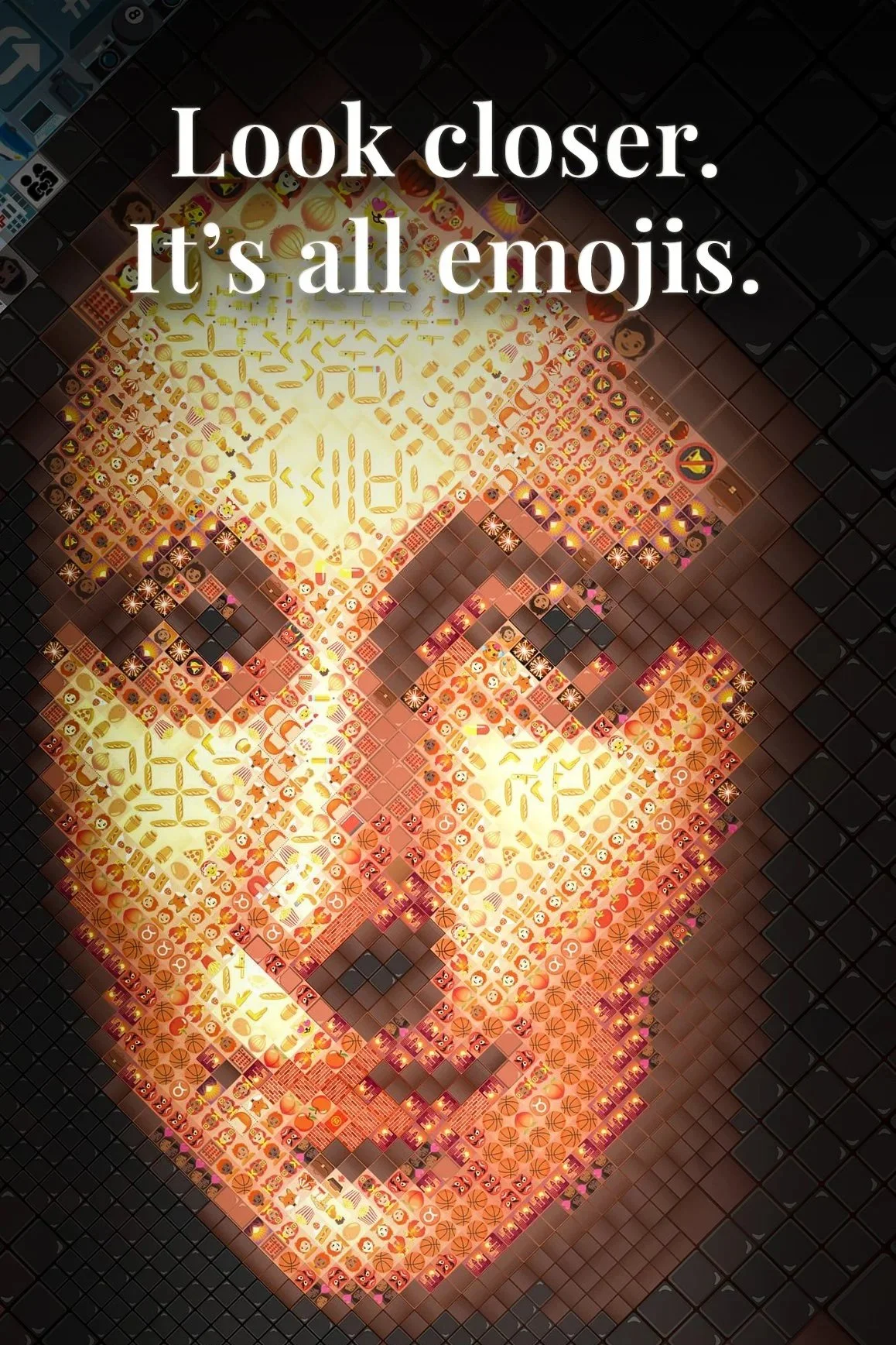 Diamojism is a new art form inspired by the portrait mosaics of Chuck Close, reimagined for the digital age. Using a custom-built program, I transform familiar images into expressive visual narratives—constructed entirely from emojis. This is not AI art.